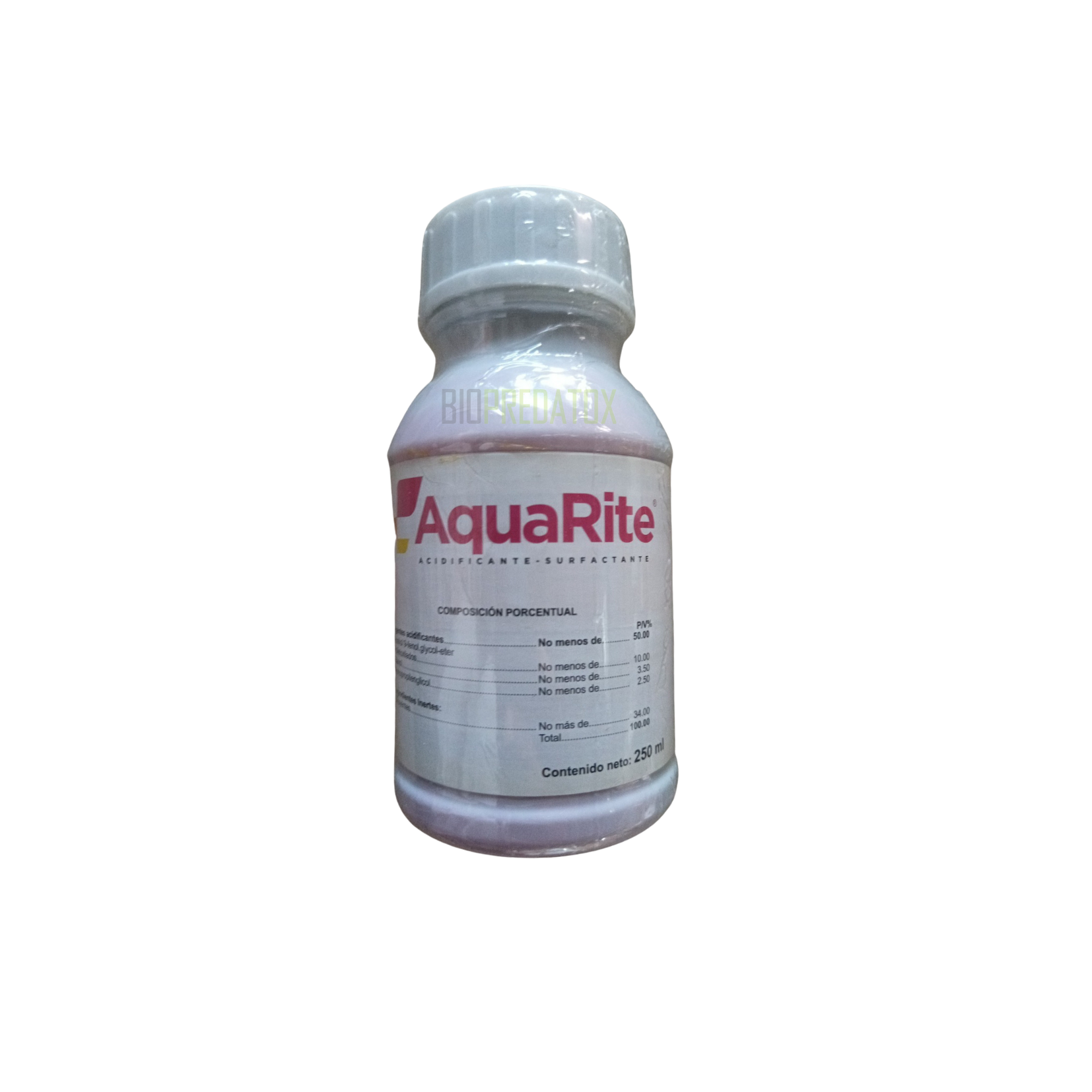 Aqua rite es un acidificante surfactante líquido de alta concentración y solubilidad, diseñado para regular el ph y la dureza de las aguas utilizadas en las mezclas para las aspersiones foliares de agroquímicos en cultivos hortícolas, frutícolas, ornamentales, cereales y granos.