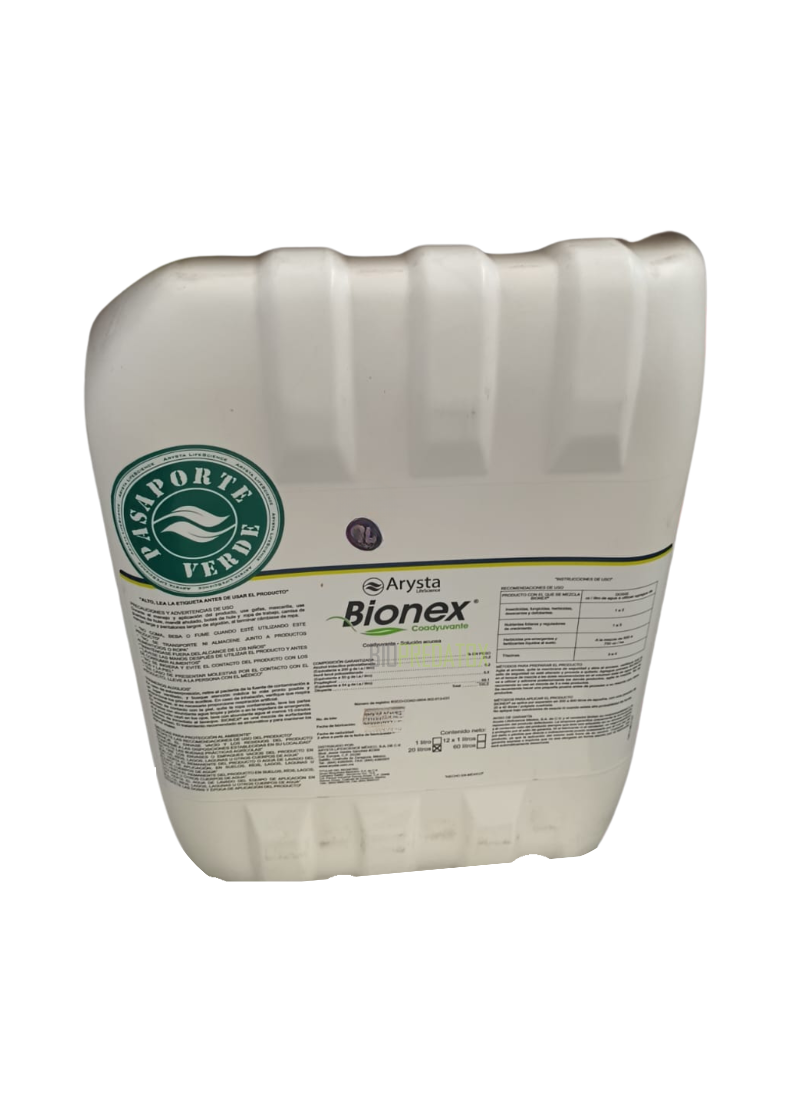 Bionex coadyuvante auxiliar en el proceso de cobertura y penetración de los productos insecticidas, herbicidas, fungicida y de nutrición que requieran ser asperjados vía foliar.