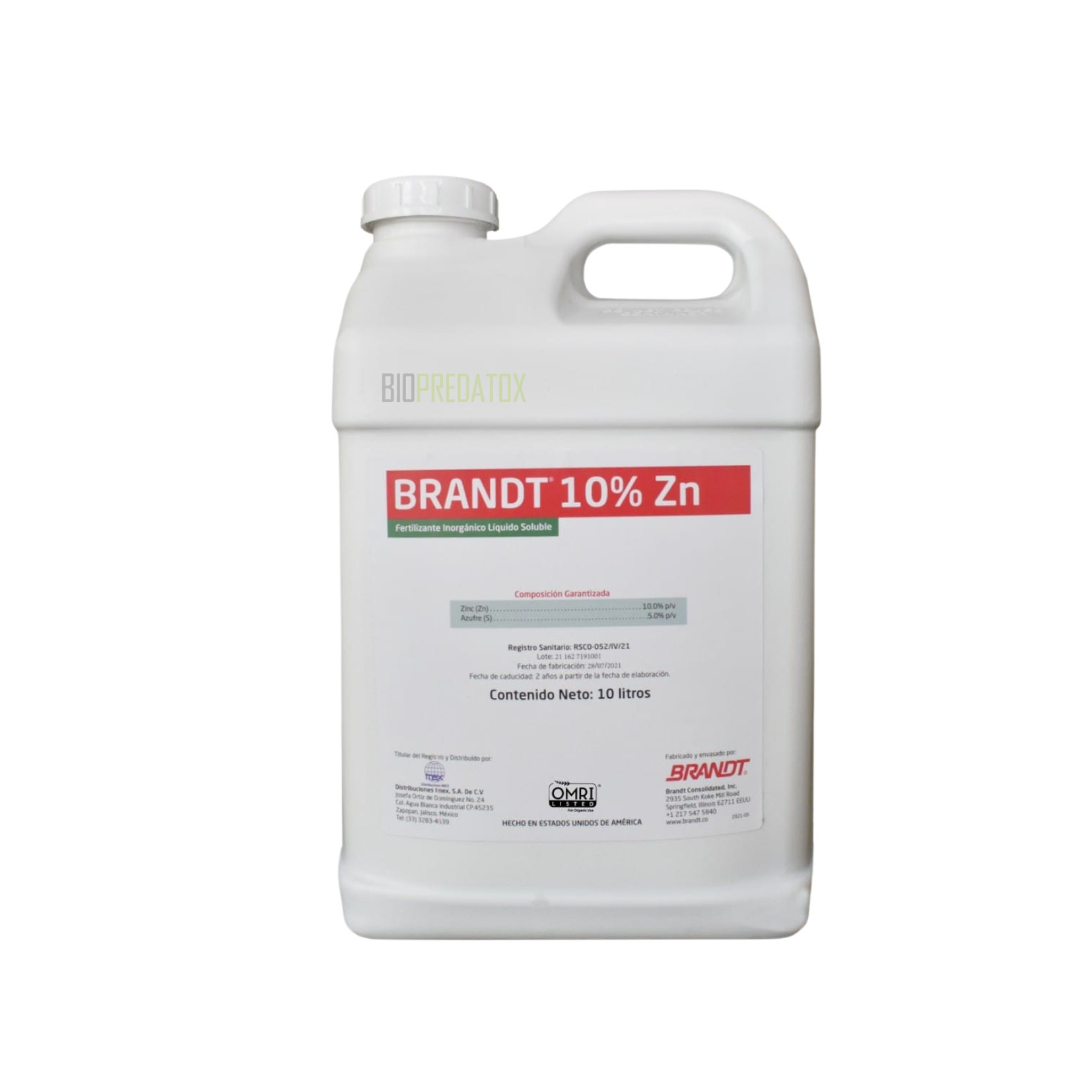 Brandt 10% zn es un fertilizante en presentación liquida que contiene en su formulación zinc y azufre. Brandt 10% zn ayuda a prevenir y corregir deficiencias de dichos elementos.
