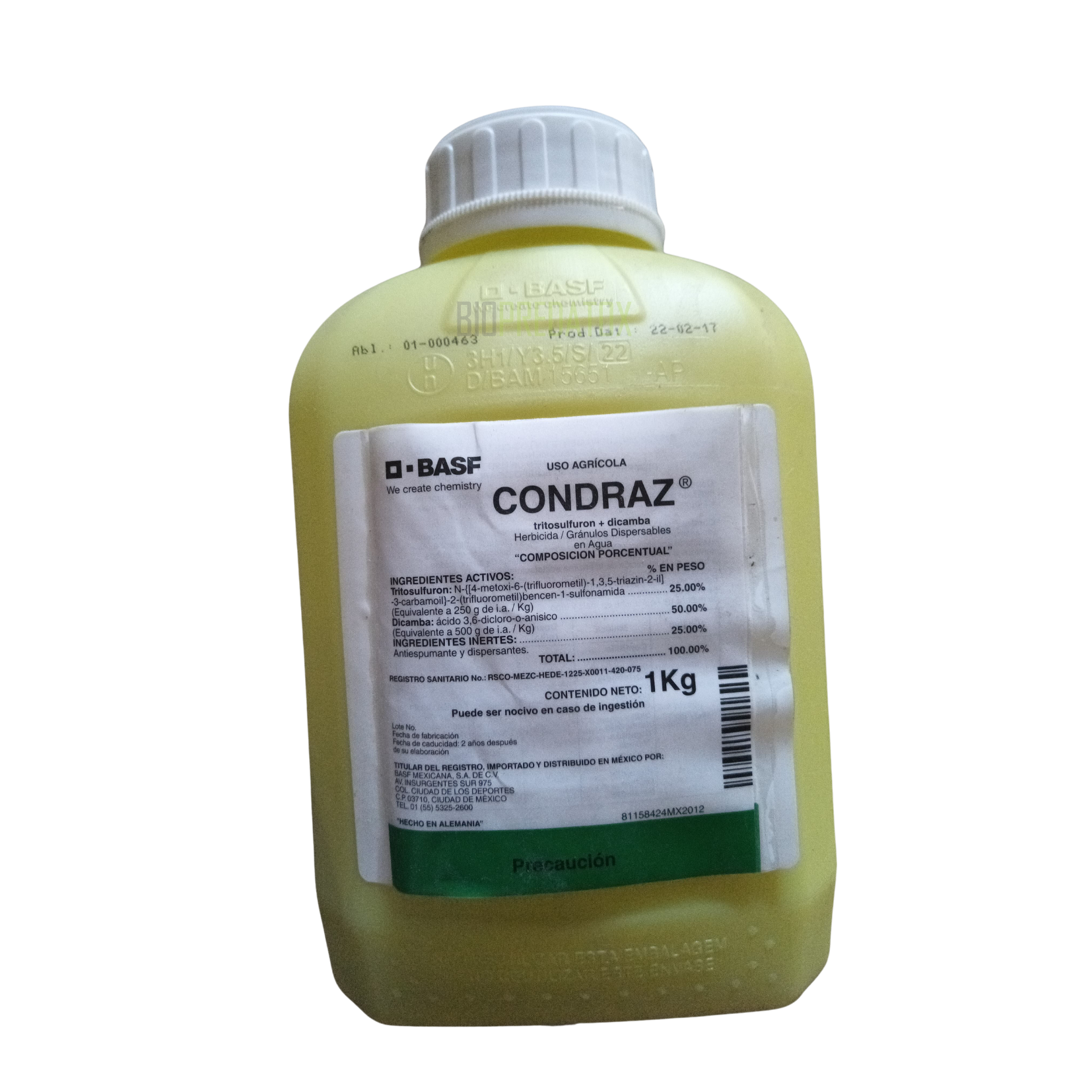 Condraz es un herbicida sistémico de post emergencia especialmente indicado para el control de malezas de hoja ancha en el cultivo de maíz y trigo, está formulado en base a dos ingredientes activos; tritosulfuron (es absorbido principalmente