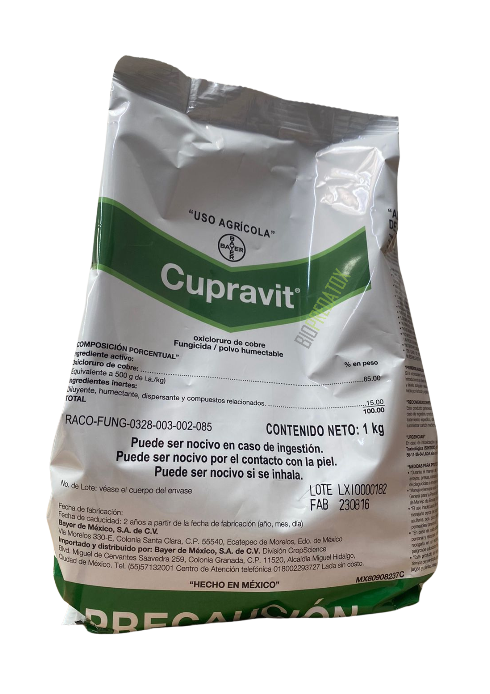 Cupravit es un fungicida de aplicación preventiva y acción por contacto que controla las principales enfermedades fungosas en cultivos de gramíneas, solanáceas, cítricos, crucíferas, cucurbitáceas, leguminosas, frutales, espinaca, lechuga, fresa, cacao, café, nogal, tabaco, espárrago, cempasúchil, vainilla y vid, complementando eficazmente los programas de alternancia con fungicidas sistémicos.