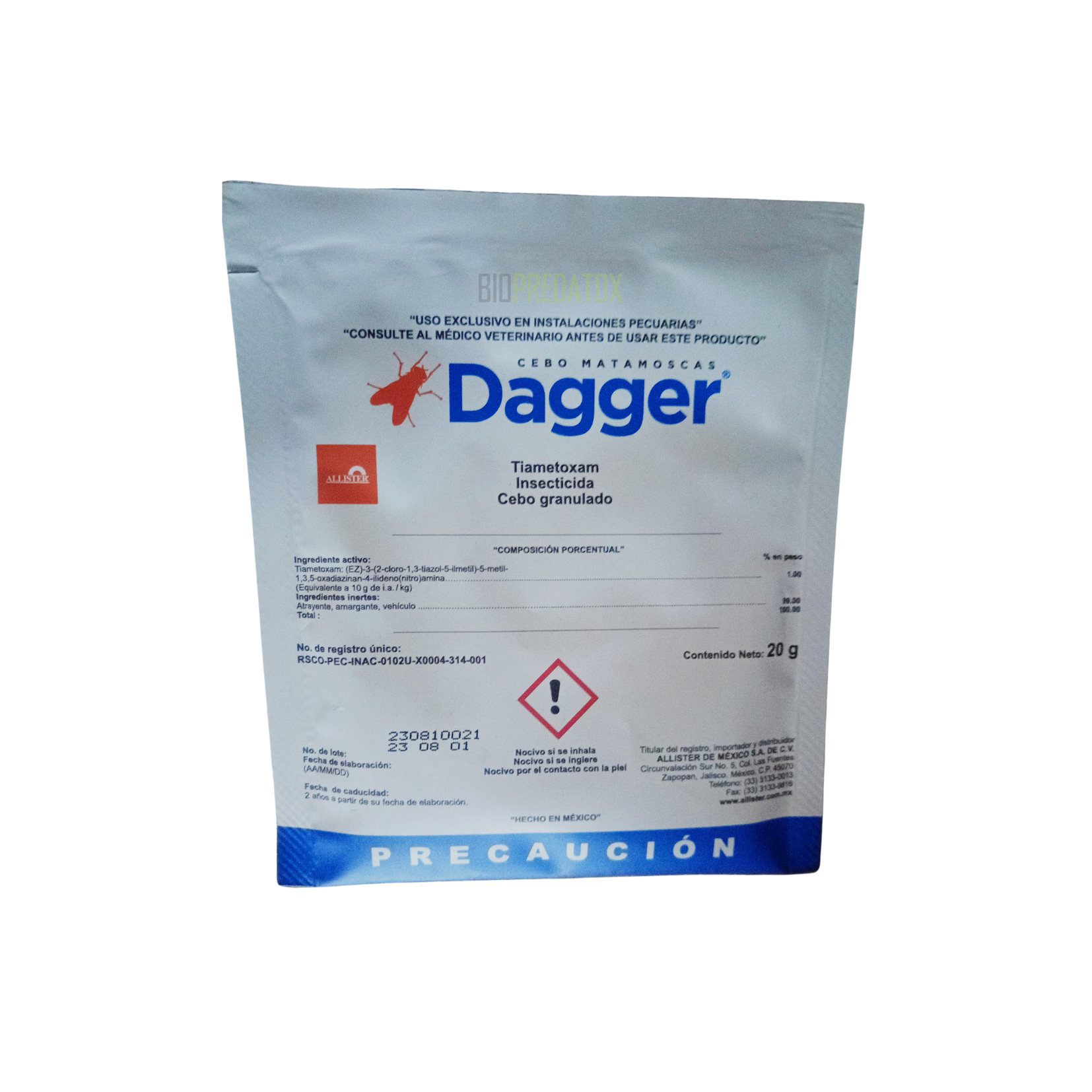 Dagger es un cebo mosquicida granulado de efecto instantáneo para el control de mosca (musca domestica) y otras moscas chupadoras lamedoras, en interiores