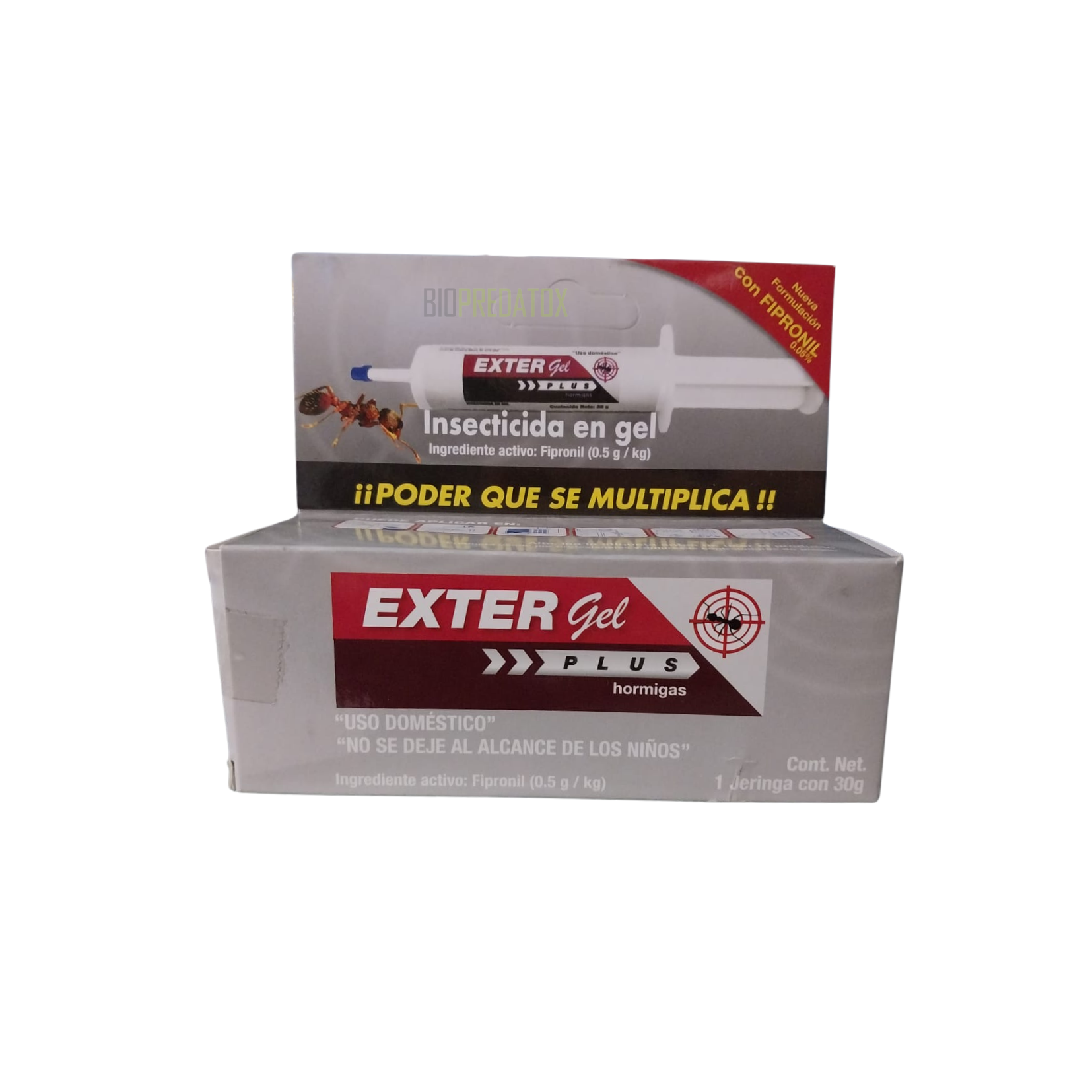 Exter gel hormiga plus práctica jeringa dosificadora. Lista para usarse de forma fácil, limpia y segura. De uso doméstico, industrial y para profesionales del control de plagas de hormigas, es un producto discreto y fácil de aplicar para hormigas, sólo se necesita colocar el émbolo de la jeringa, retirar el tapón y aplicar pequeños puntos en todo lugar donde se ven rastros de hormigas. El gel produce un efecto dominó en las hormigas, una vez que una hormiga lo consume, alimenta a otras, eliminando a todos los integrantes del nido