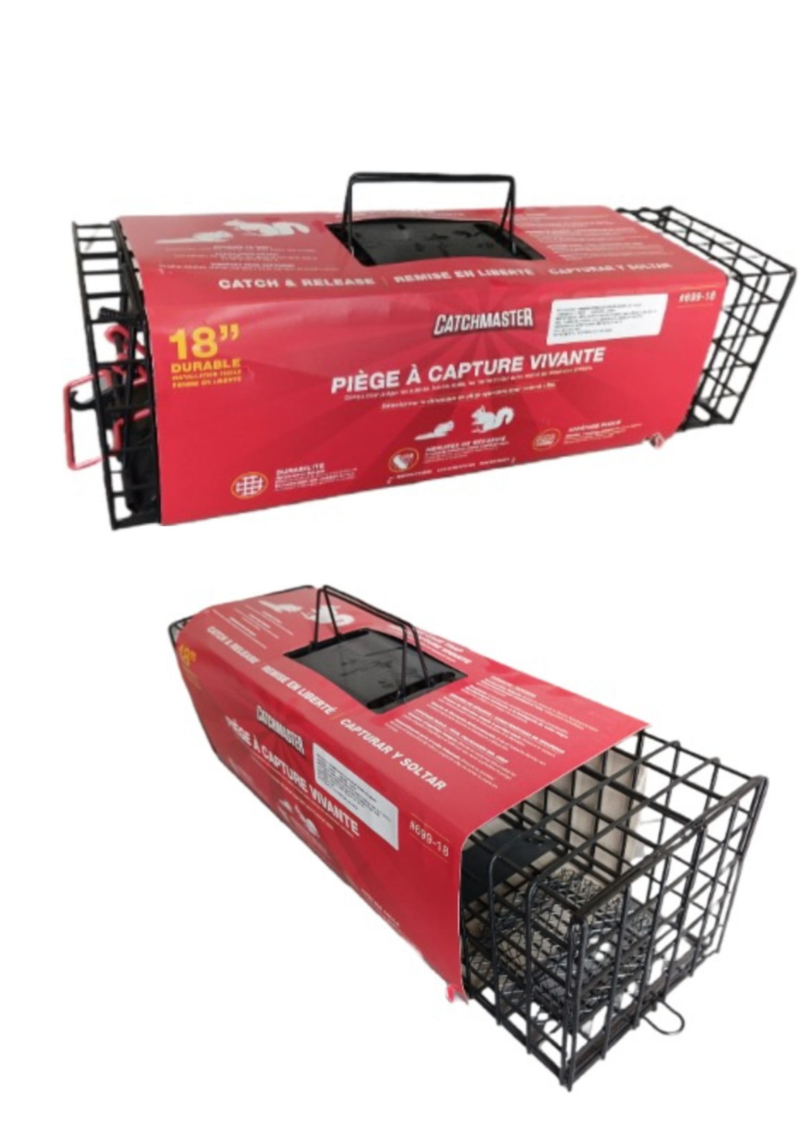 Jaula catchmaster 18 pulgadas ardilla diseñado para atrapar ardillas, conejos, otros animales de tamaño similar resistente, componentes de metal galvanizado/anodizado, recubrimiento resistente a la intemperie de color negro, reduce los reflejos y se integra en el entorno