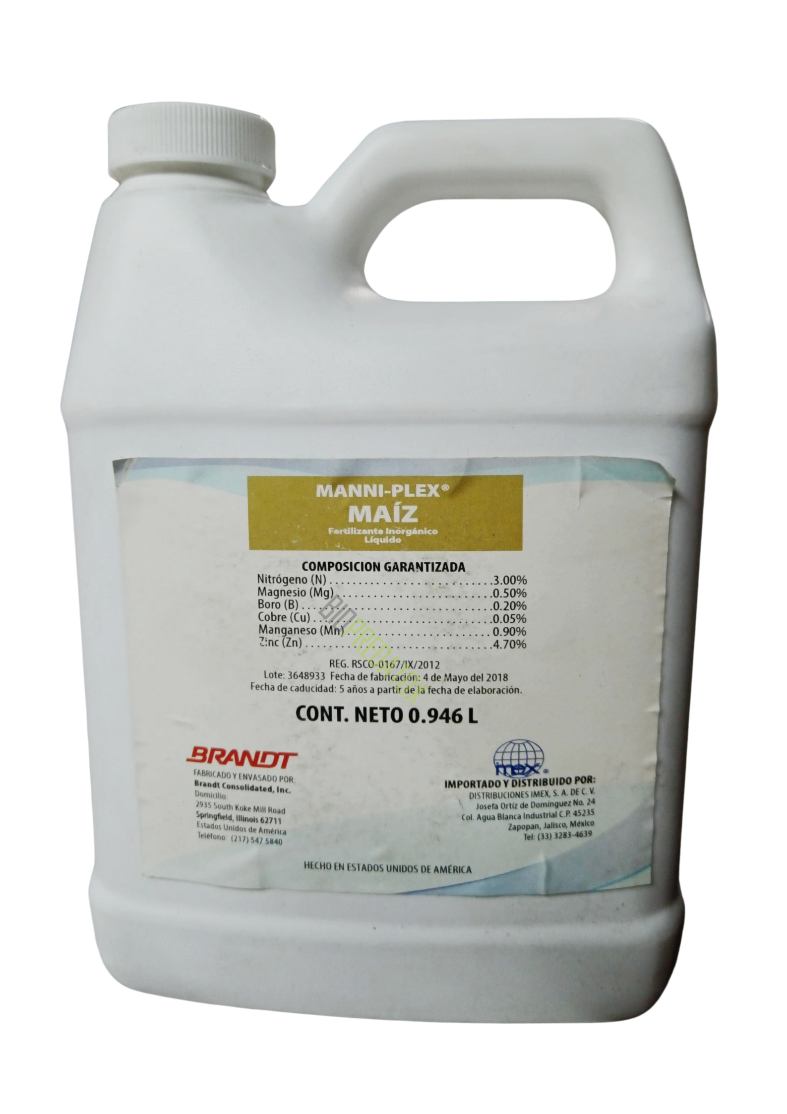 Manniplex maiz corrector de carencias múltiple. Fertilizante inorgánico líquido a base de nitrógeno y microelementos necesarios para la planta la deficiencia de nitrógeno se observa en las hojas viejas, se ven hojas de color pálido, que va tornándose en amarillo, incluyendo las venas. Aunque la clorosis llegue a toda la planta los síntomas son más evidentes en las hojas viejas. La planta no crece, el follaje es escaso.