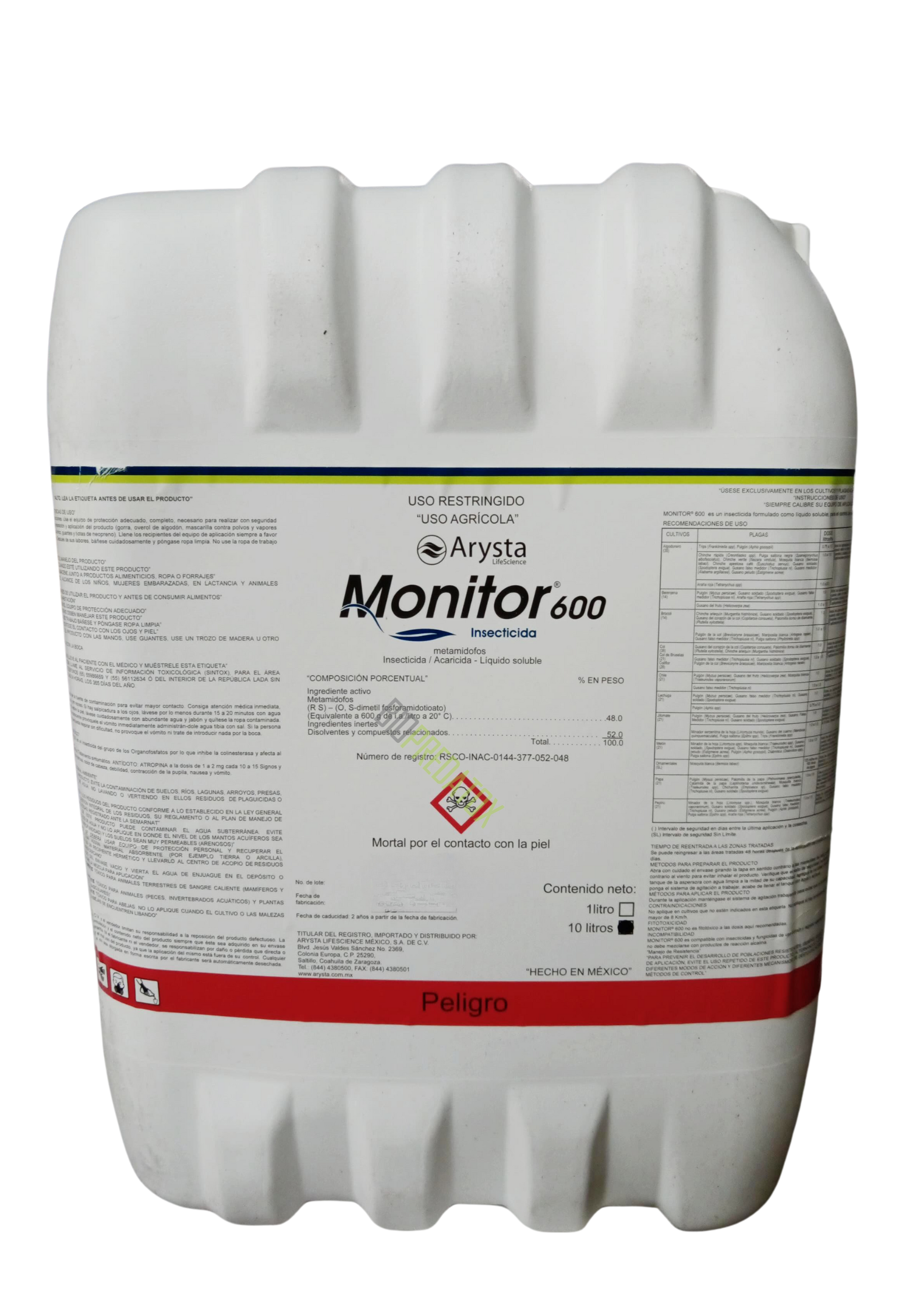Monitor 600 es un insecticida / acaricida organofosforado sistémico de amplio espectro que actúa sobre insectos chupadores y masticadores. Monitor 600 actúa inhibiendo la colinesterasa y afectando el sistema nervioso central.