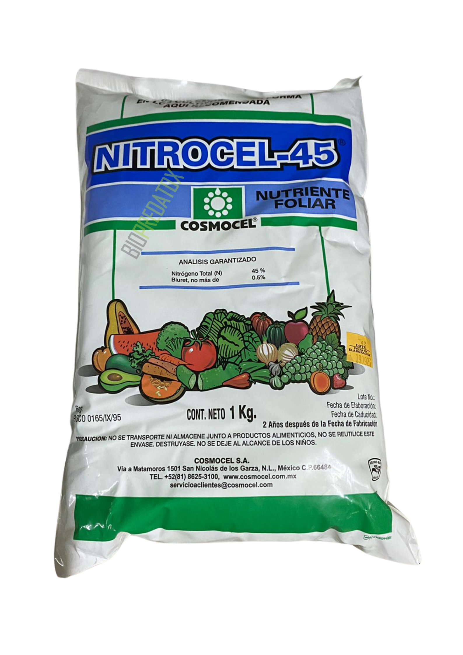 Nitrocel 45 es un nutriente para aplicación foliar con alta concentración de nitrógeno. Ideal para la corrección en deficiencias de nitrógeno durante todo el ciclo de desarrollo del cultivo y como complemento para una mejor asimilación de productos aplicados foliarmente. A partir de urea con baja concentración de biuret, evita daños de fitotoxicidad en las hojas (quemaduras). Nitrocel 45 está especialmente diseñado para aplicaciones durante todo el ciclo de vida de la planta.