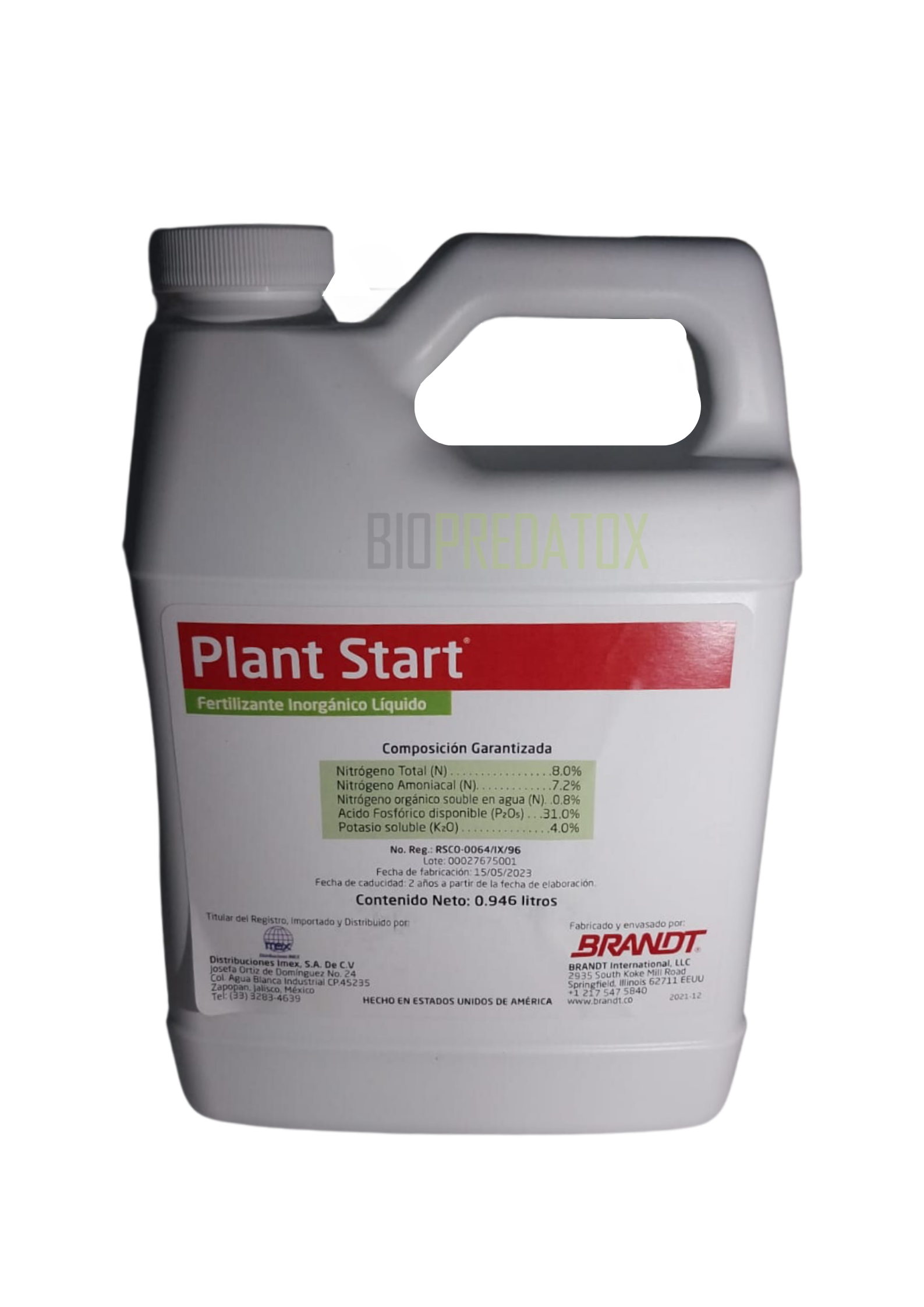 Plant start, es un fertilizante líquido que contiene nitrógeno, fósforo y potasio, además posee hormonas, vitaminas y aminoácidos. Esta combinación otorga vitalidad a las plantas de invernadero que son llevadas al campo disminuyendo el colapso y retraso al momento del trasplante. P