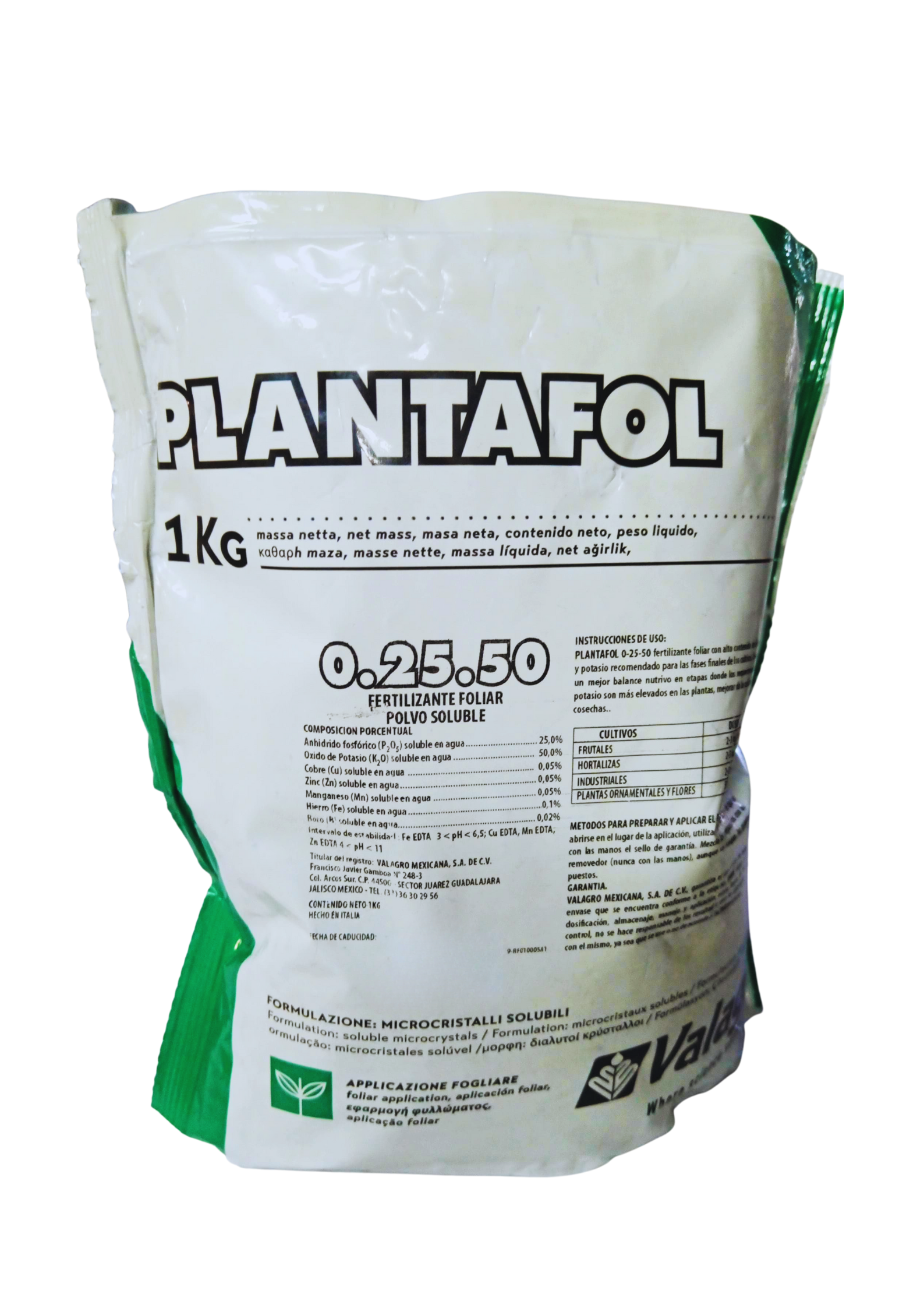 Plantafol 0 25 50 previene la aparición de estados carenciales y favorece el desarrollo equilibrado de los cultivos. Plantafol es una línea de integradores foliares caracterizada por una elevada solubilidad y una rápida y completa absorción al interior de la hoja.