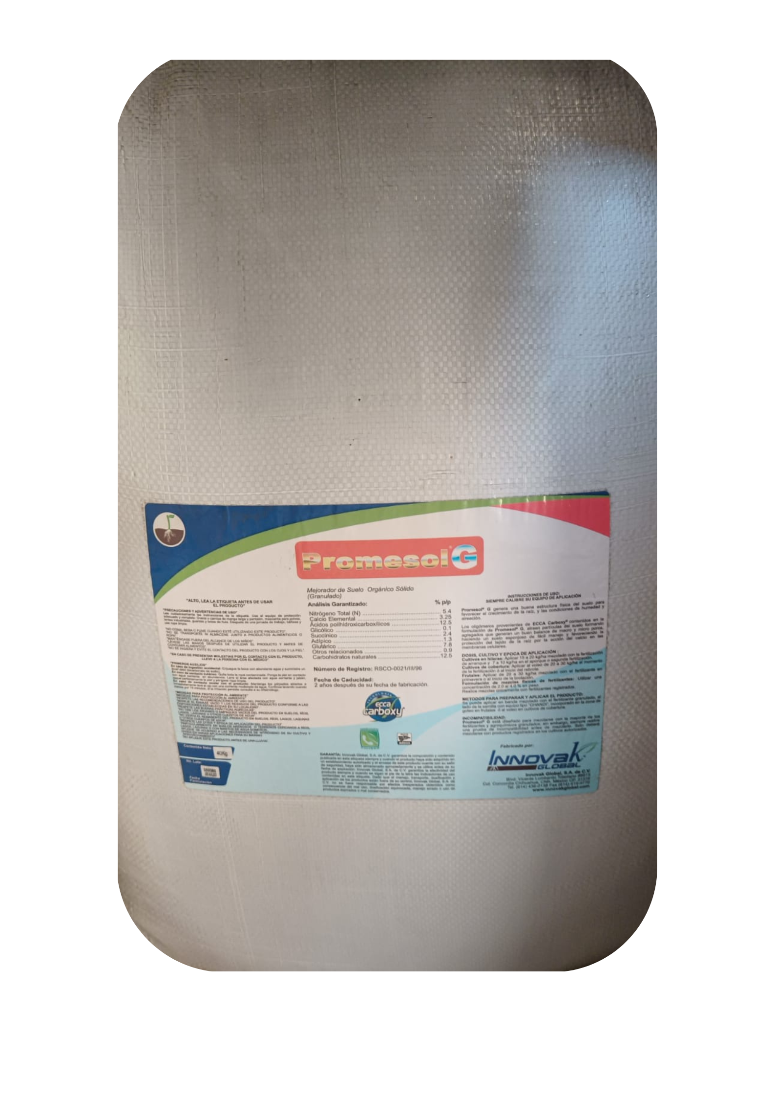 Promesol g es una formulación a base de extractos concentrados de cascarillas agrícolas ecca carboxy que genera una buena estructura física de suelo para favorecer el crecimiento de la raíz y las condiciones de humedad y aireación, auxiliando en la protección de los cultivos contra el estrés salino