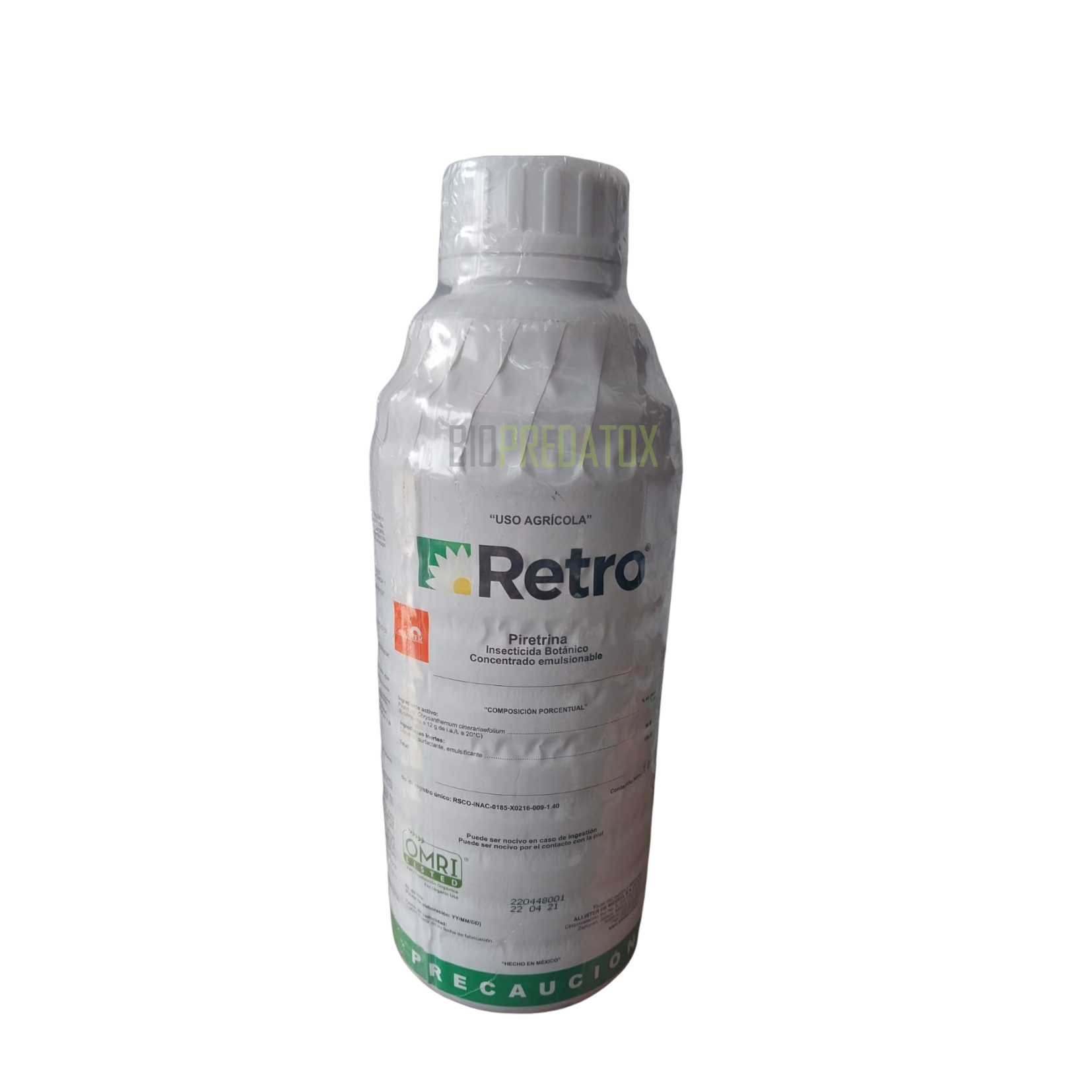 Retro es un producto enlistado en omri insecticida botánico formulado a base de piretrinas naturales extraidas de la flor de la planta del piretro chrysanthemum.