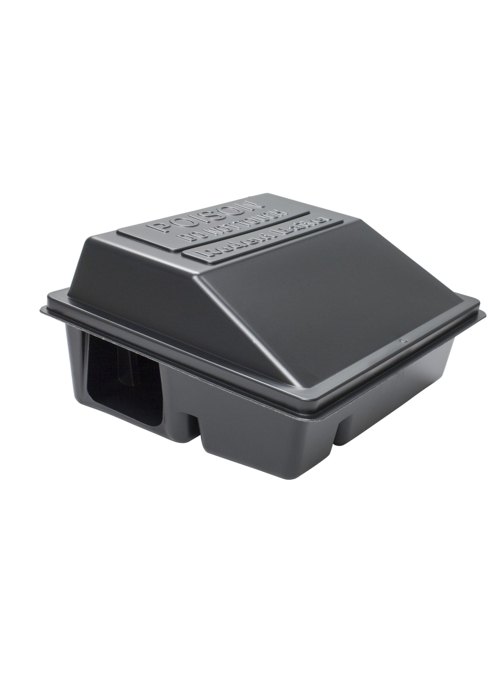 Rodent baiters contienen cebo seco y líquido y polvo rastreador, y se ajustan al ras de la pared, lo que permite una fácil entrada a los roedores. tienen un cierre automático en la parte trasera y un cierre de nailon en la parte delantera. tienen un diseño de una sola pieza que se encaja y mide 5" x 3 1/2" x 1 3/4" (127 mm x 90 mm x 44 mm).