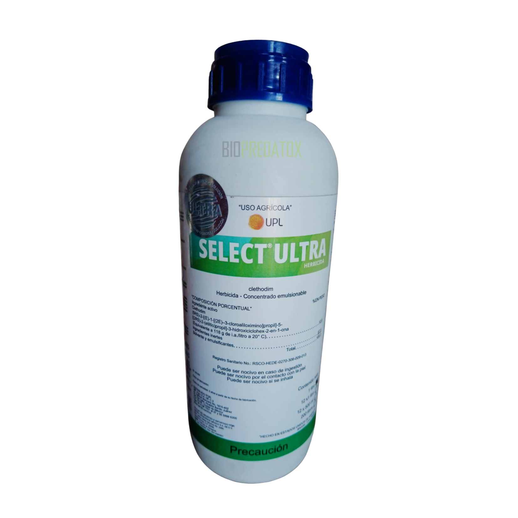 Select ultra herbicida graminicida sistémico, para aplicación post emergente, selectivo a cultivos de hoja ancha. Ofrece rápida penetración y traslocación en la cutícula de la hoja a la raíz y a los puntos de crecimiento de las malezas. Excelente alternativa para control de zacates tolerantes a otros herbicidas, se degrada en metabolitos múltiples por la acción microbiana, dependiendo del tipo de suelo y de la cantidad de materia orgánica, su vida media es de 1 5 días.