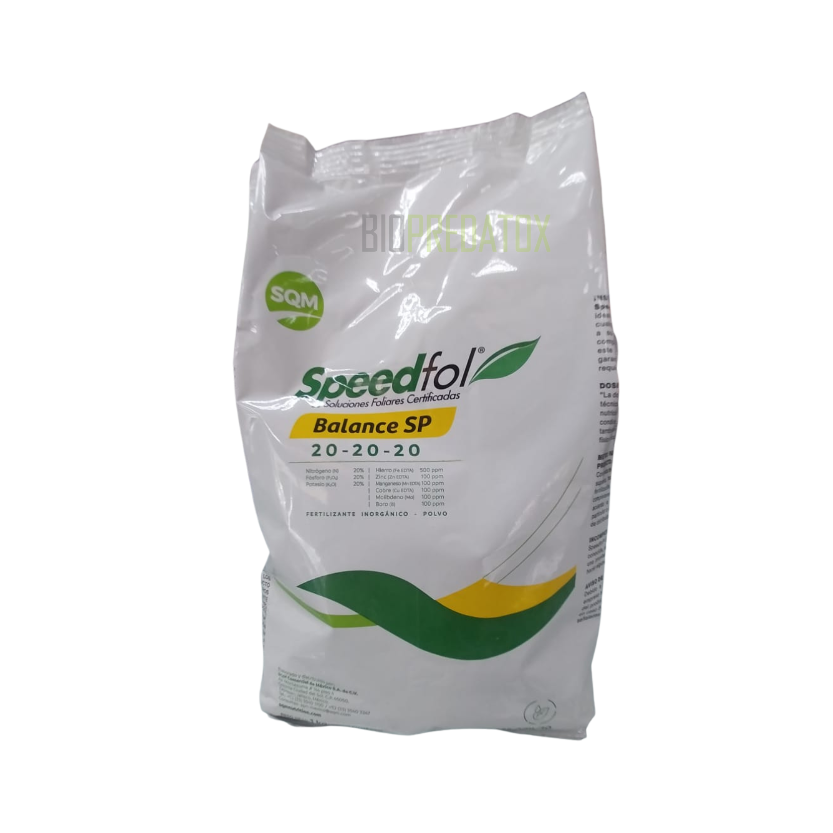 Speedfol balance (20 20 20) este producto es un fertilizante foliar ideal para su uso como formulación auxiliar en cualquier etapa fenológica de los cultivos. Debido a su solubilidad total e instantánea ya su completo contenido de macro y micronutrientes, este producto es un eficiente comodín que garantiza la nutrición óptima de los cultivos que requiere una relación npk 1: 1: 1.