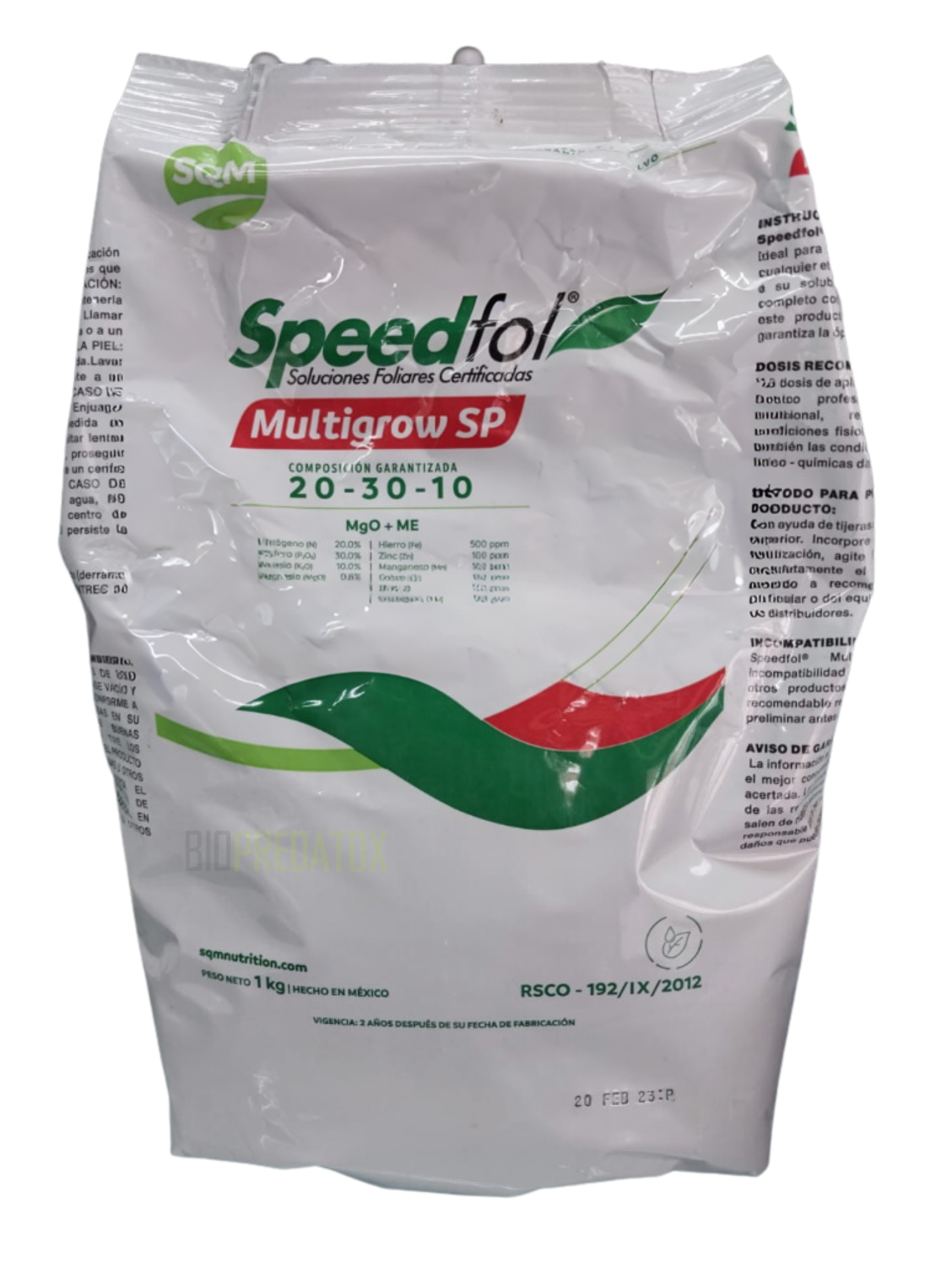 Speedfol multi grow 20 30 10 este producto es un fertilizante foliar ideal para su uso como formulación auxiliar en cualquier etapa fenológica de los cultivos. Debido a su solubilidad total e instantánea y a su completo contenido de macro y micronutrientes este producto es un eficiente comodín que garantiza la óptima nutrición de los cultivos.
