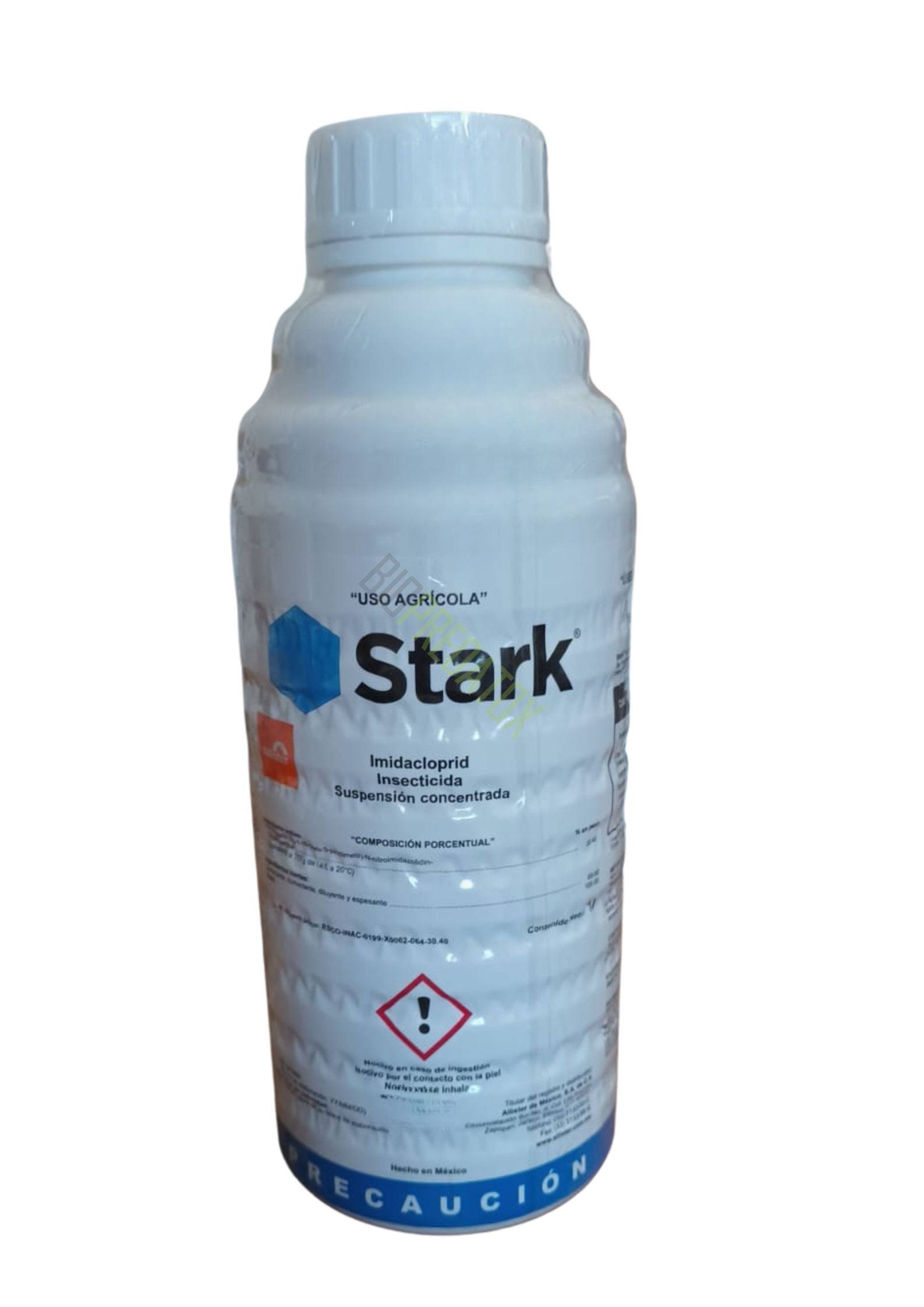 Stark es un insecticida a base de imidacloprid, formulado como suspensión acuosa al 35% y de alta estabilidad y perfecta suspensión en el agua, pertenece al grupo de los cloronicotinilos, muy efectivos para el control de chupadores por vía sistémica o por contacto e ingestión, se puede aplicar en charolas, al suelo por sistema de riego, dirigido a la base de la planta o por aplicación foliar.