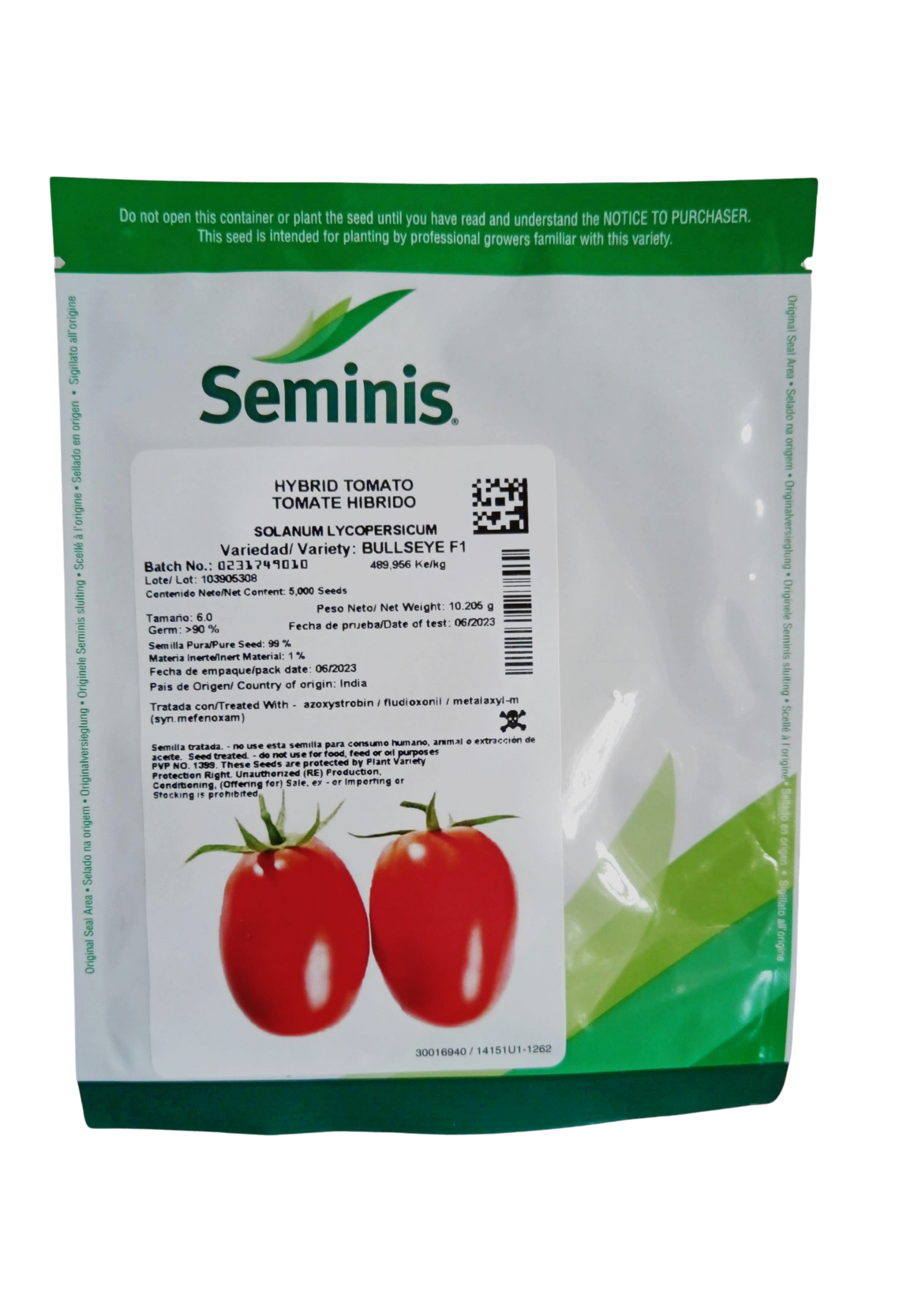 Tomate hibrido bullseye, concentrado de tomate y alta productividad de frutas grandes y muy firmes que facilitan el envasado y el envío a lo largo del ciclo de largas distancias. También proporciona mayores ingresos para la producción en el suelo y tiene resistencia intermedia al rizo de la hoja amarilla del tomate. Los frutos de esta variedad tienen una maduración uniforme y tienen una forma ligeramente alargada, un tono rojo, paredes gruesas y lisas.