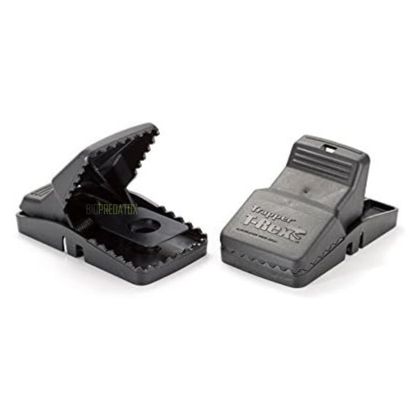 Trapper snap trap es una trampa con resorte que es fácil y segura de usar. Una trampa mecánica de última generación, se coloca con una mano en un movimiento fácil, tan fácil como abrir una pinza de ropa. Añade provoke ratones para hacer estas trampas el doble de atractivo. Utiliza trapper mini t rex snap trap solo o en pares con la abertura hacia la pared. Los ratones entran desde la parte delantera o por los lados. Coloca la trampa a lo largo de las paredes donde los ratones viajan, en armarios o donde quiera que estén presentes. La eliminación también es fácil. Simplemente aprieta los dos extremos juntos para soltar el ratón y la trampa se restablece automáticamente para ser utilizada una y otra vez.