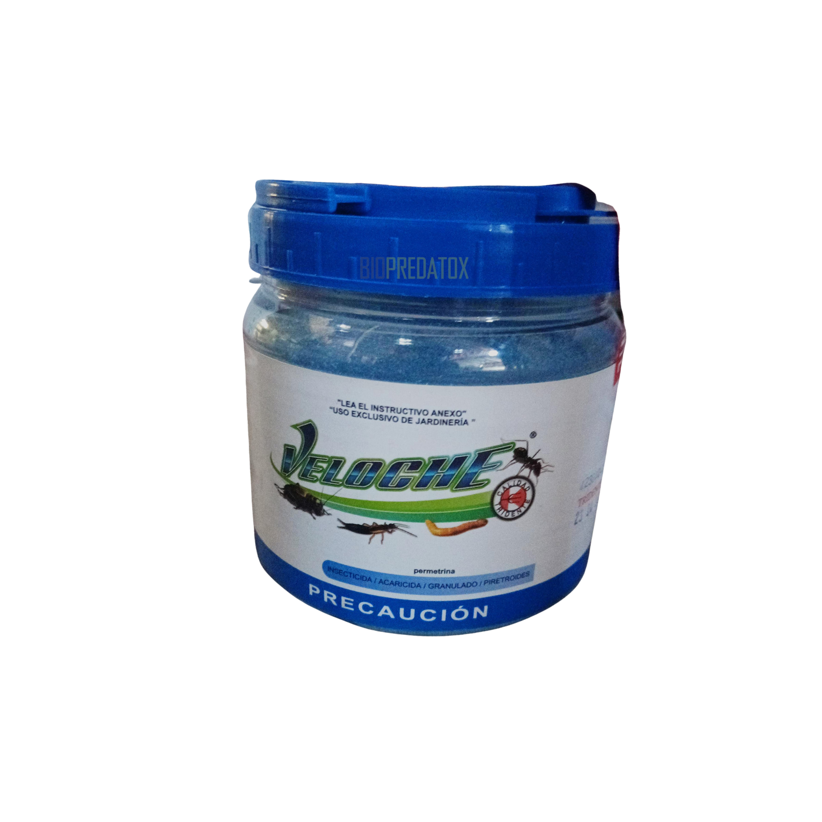 Veloche es un insecticida de amplio espectro de control, seguro y efectivo contra la mayoría de plagas de jardín. Es un insecticida que pertenece al grupo de los piretroides, su modo de acción es de contacto e ingestión, el insecticida es liberado de forma gradual de tal manera que los insectos rastreros se impregnan hasta llegar a su dosis letal y morir.