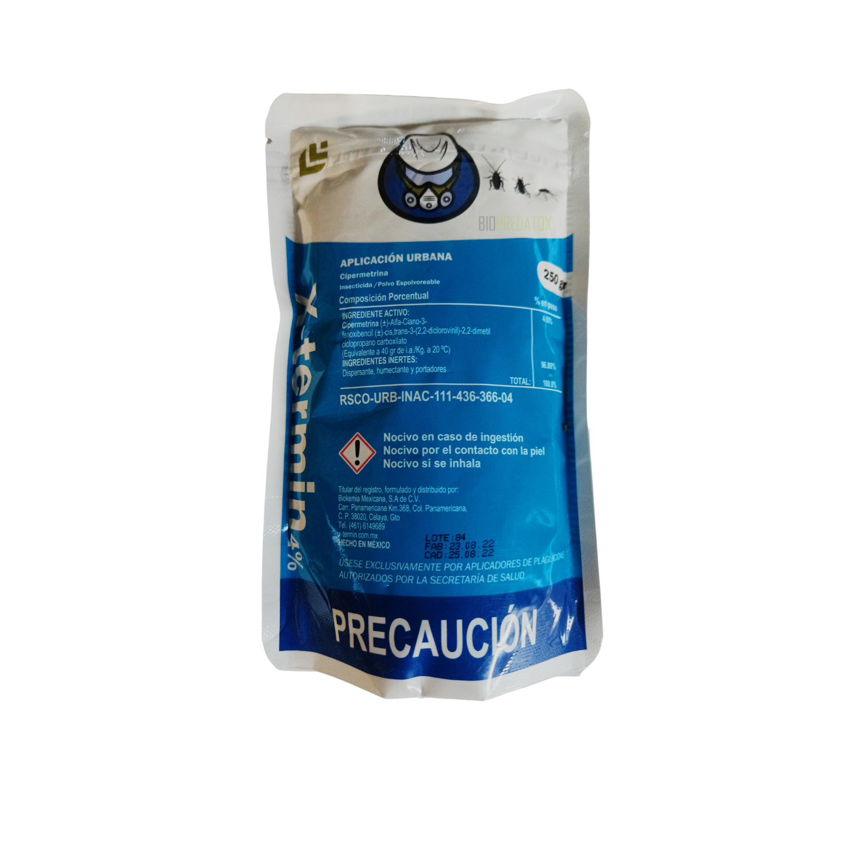 X termin es un insecticida piretroide con buen efecto inicial y residual, de amplio espectro de acción, que actúa por contacto e ingestión sobre el sistema