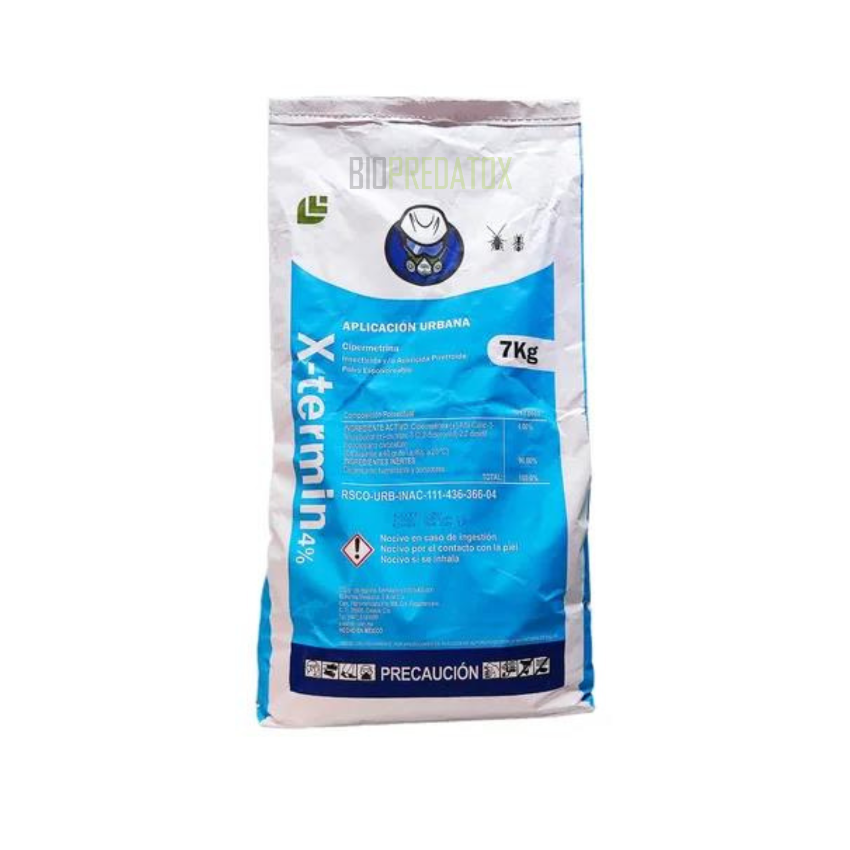 X termin 4% es un insecticida piretroide en polvo en base a cipermetrina al 4% con buen efecto inicial y residual, de amplio espectro de acción, que actúa por contacto e ingestión sobre el sistema nervioso de un gran numero de insectos. Es útil para su uso en instalaciones eléctricas, equipos y aparatos eléctricos, sitios con temperaturas extremas, falsos plafones, paredes huecas, grietas y hendiduras, jardines y áreas verdes.